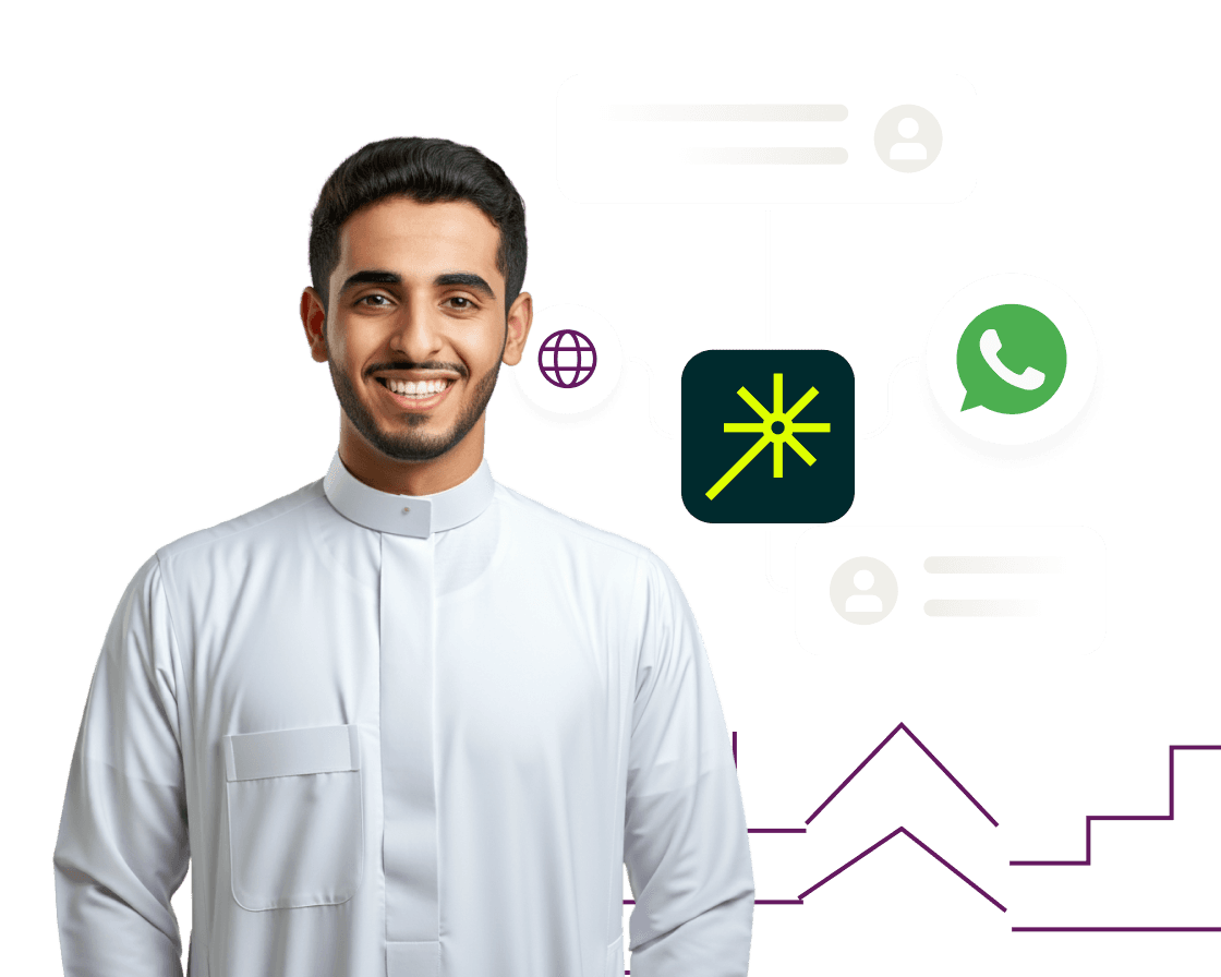 كل محادثة واتساب مع عميل جديد تُحفظ تلقائياً في نظام CRM. منجز يجمع بيانات العملاء من كافة قنوات التواصل (واتساب، إنستغرام، فيسبوك) في نظام إدارة علاقات العملاء موحد ويحول كل محادثة واتساب إلى فرصة مبيعات قابلة للتتبع.
