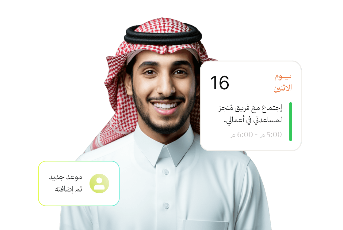 تنظيم مواعيدك صار أسهل من أي وقت، مع التقويم الذكي لمنجز اللي يتيح لعملائك حجز المواعيد مباشرةً. رسائل التذكير التلقائية توفر عليك الوقت وتحافظ على التزام العملاء.
