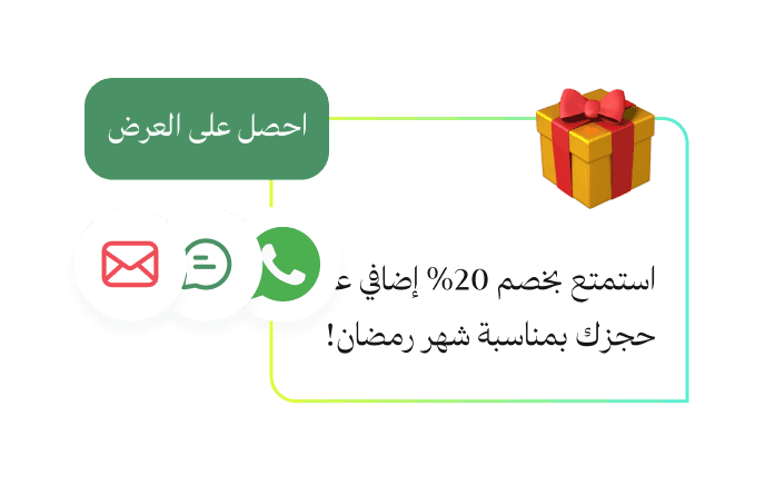 ينتقل الضيف إلى صفحة انطلاق مصممة خصيصًا للعروض الموسمية مثل العيد ورمضان، حيث يجد مؤقتًا تنازليًا يحفزه على الحجز الفوري.