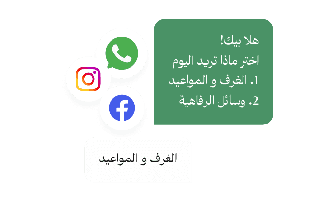 يتم الرد تلقائيًا على استفسارات الضيف عبر الذكاء الاصطناعي على واتساب وإنستجرام، مما يسهل عليه اتخاذ القرار.