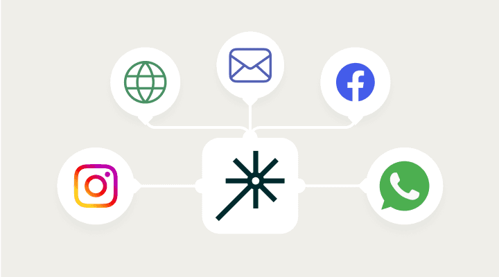 تكامل مع واتساب، إنستجرام، فيسبوك، شات الموقع، والإيميل في منصة واحدة.