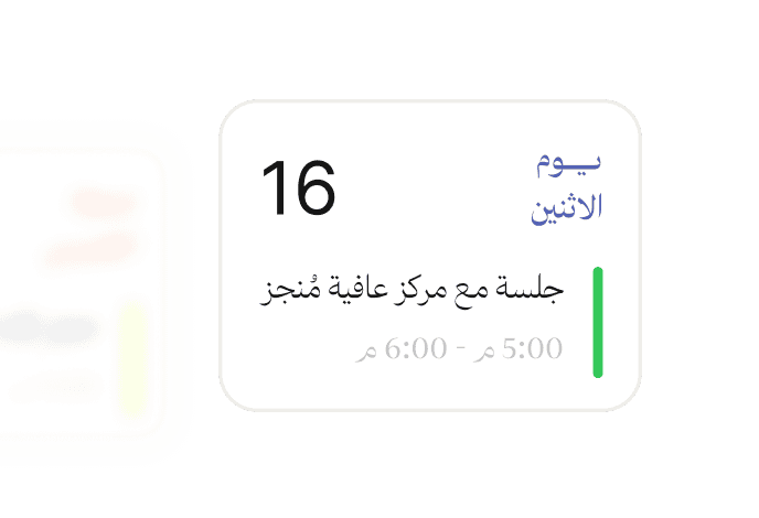 جدولة المواعيد تلقائيًا مع إرسال تذكيرات عبر واتساب قبل الجلسة، مما يقلل من حالات الإلغاء ويضمن التزام العملاء بحجوزاتهم.